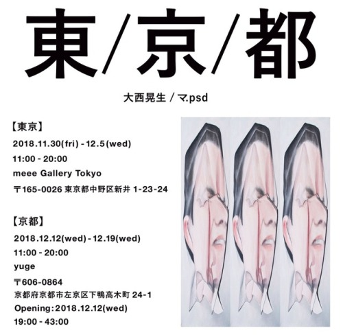 本展示は、東京で活動するマ.psdと、京都で活動する大西晃生による二人展です。