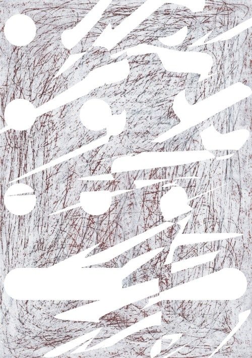彼女の作品は抽象的なビジュアルでありながら、確かな躍動感とその”何か“の存在をこちらに想像させてくれます。線のみで構成されたグラフィックとしての魅力と、何も描かれていないのにキャラクターの気配を感じさせるそのコミカルさを同居させた作品は、シルクスクリーンによって小さな画面にも、時には壁一面にも所狭しと展開されます。颯ヒロセは同じくカートゥーンアニメーションやテレビゲームから発想を得て、物語を連想させるようなキャラクターたちや、その世界を描く作家です。