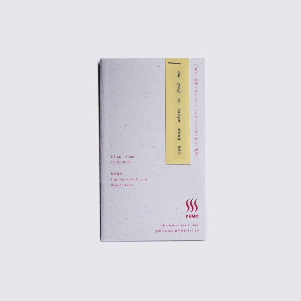 個展 "you know where to find me" 〔何処にいるか知っているでしょ/いつでも連絡してね〕